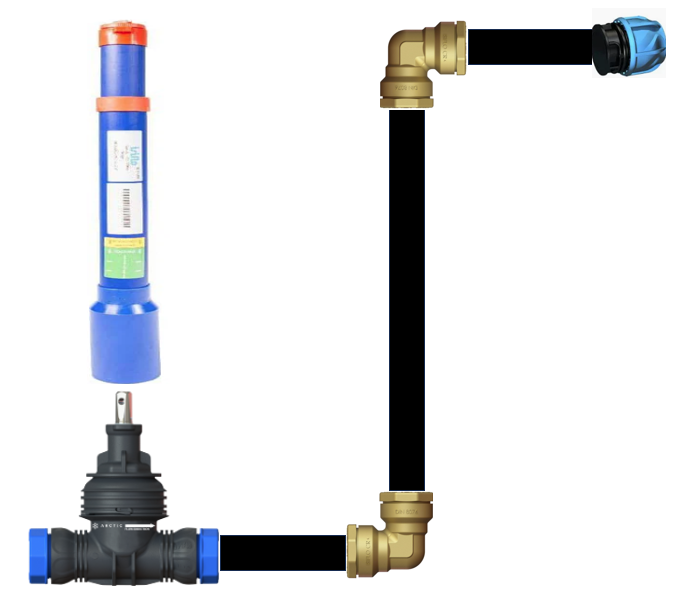 Hovedledning og stikkledninger : En billig løsning er å montere stakepunkt ved anleggets start og slutt. Her kan du senke ned tetteballer og få gjennomført tetthetsprøvingen.